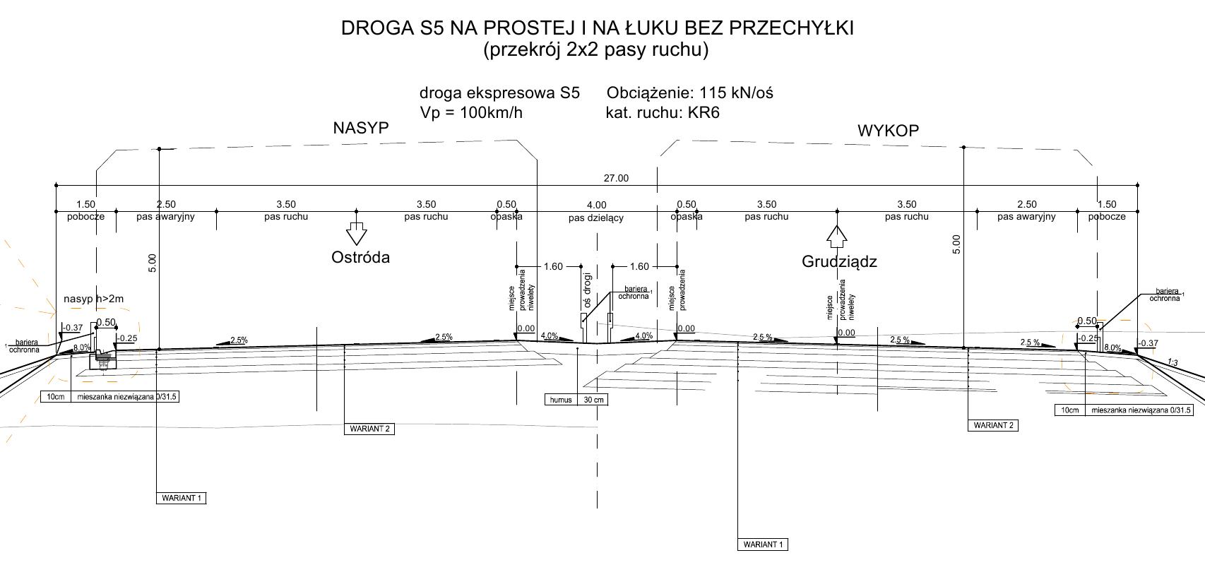 Rys. 3 Proponowany przekrój drogi ekspresowej: